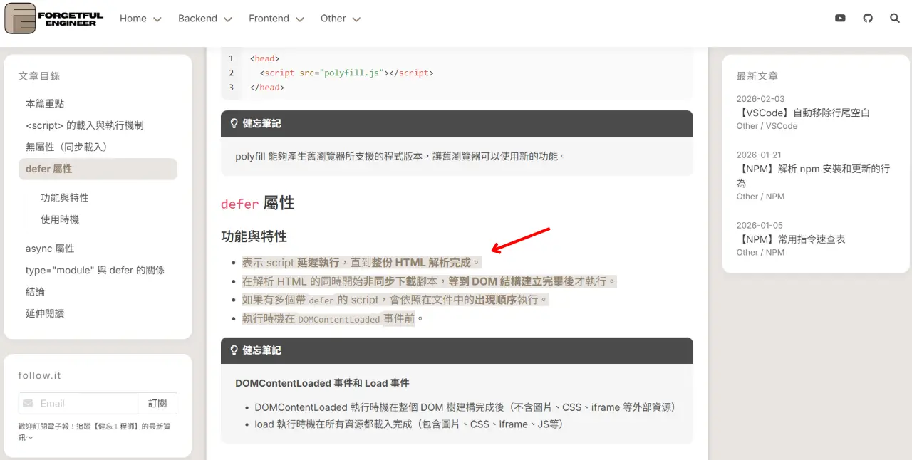 網頁中有三個 “DOMContentLoaded”,要指定定位在第三個(後面接著 “執行時機” 的那個)。